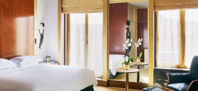 В отеле два ресторана (в том числе с одной звездой Мишлен) и собственный SPA. А из двухэтажного пентхауса открывается прекрасный вид на Эйфелеву башню.