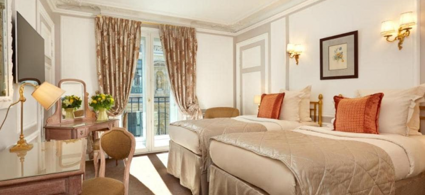 Prestige Room Louvre Eiffel Tower (25 кв. м) - элегантные номера для 2 гостей с видом на Лувр, Сады Тюильри и Эйфелеву башню. Кровать king-bed или 2 одноместные кровати, ванная комната с ванной. Благодаря расположению и планировке в номере обилие естественного дневного света.