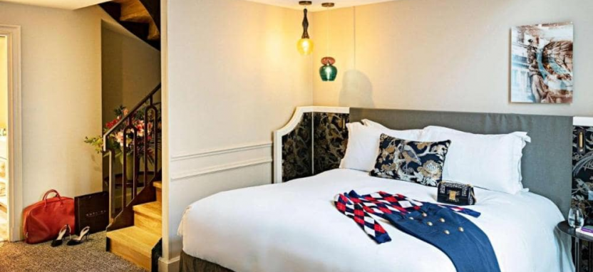 Duplex Junior Suite (38 кв. м) - двухэтажные сьюты с гостиной зоной на верхнем этаже и спальней с кроватью king-bed на нижнем. Вид на улочку Парижа или внутренний дворик. Размещение до 4 гостей.