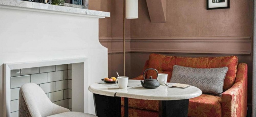 Junior Suite King Scribe St. View (35 кв. м) - сьюты с кроватью king-bed, гостиной зоной с софой и декоративным камином. Вид на улицу Скрибе. Размещение до 4 гостей.