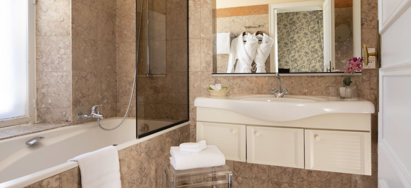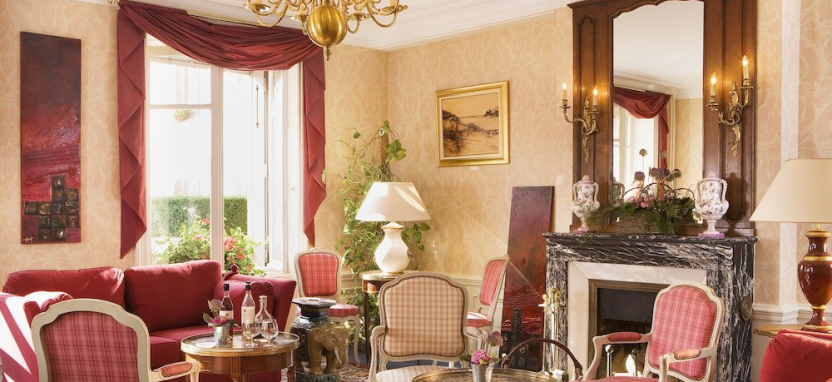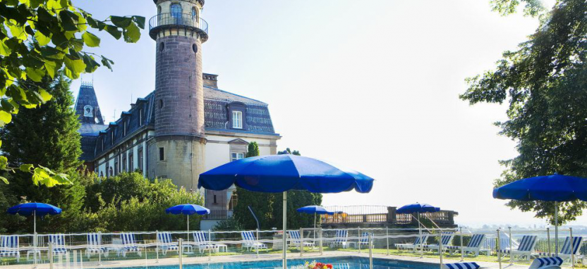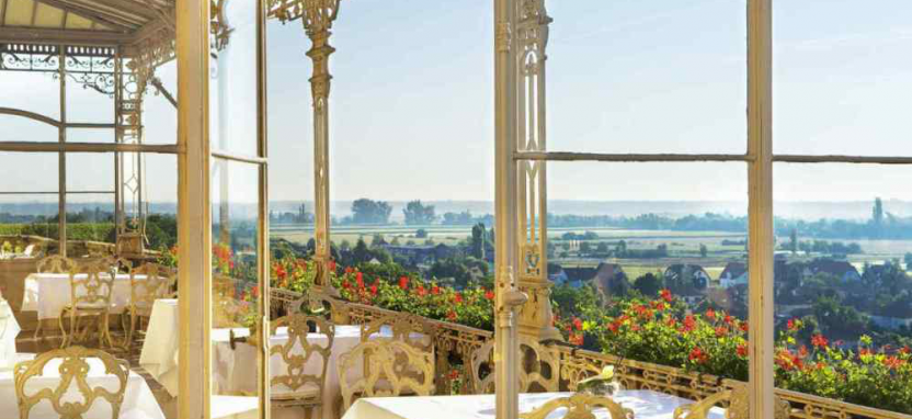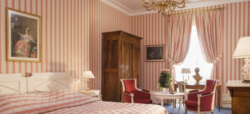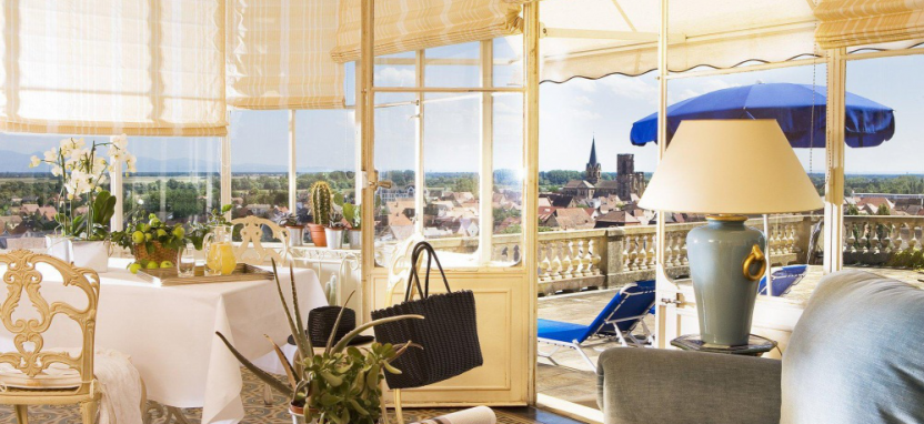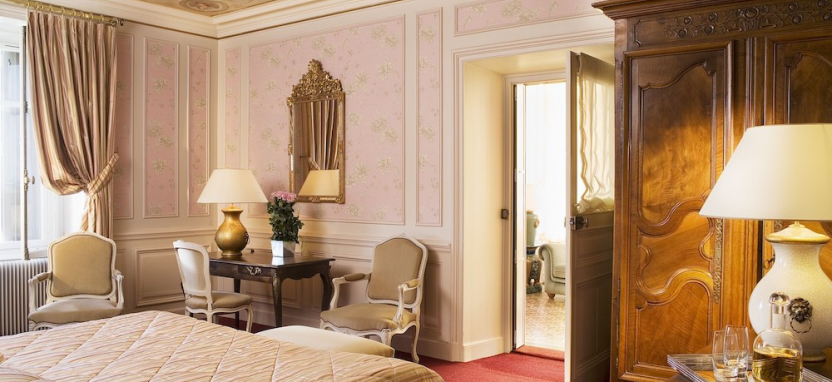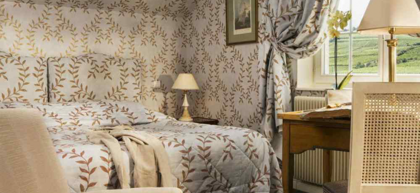 Deluxe Room (35 кв. м) – просторные номера в основном здании. Вид на сад или пейзажи Эльзаса. Номера отличаются между собой дополнительными опциями: в одном есть камин, в другом терраса, веранда или расписной потолок. Кондиционер, сейф, фен, халаты, мини-бар, чайник.