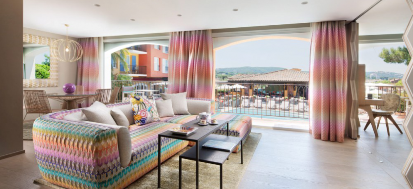 Missoni Suite (180 кв. м) – самый просторный сьют отеля, расположен в самом сердце комплекса. Две спальни, две ванные комнаты, просторная терраса, огромная гостиная с видом на бассейн. Для гостей этого сьюта в стоимость включен завтрак буфет, безалкогольные напитки из мини-бара, кредит 200 евро на услуги прачечной, VIP-сервис, подарок, лимузин-трансфер из аэропорта Ниццы и обратно.