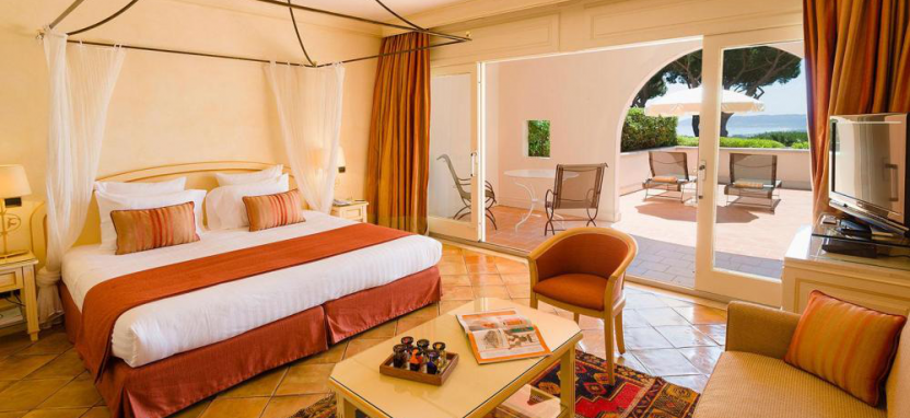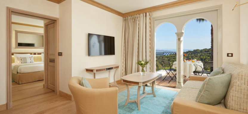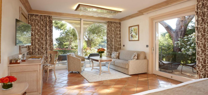 Junior Suite Pampelonne (45 кв. м) – уютные номера с террасой с видом на бухту Пампелон. Просторная спальня с кроватью king-size, гостиная с софой, ванная комната с ванной, душем и двойной раковиной.
