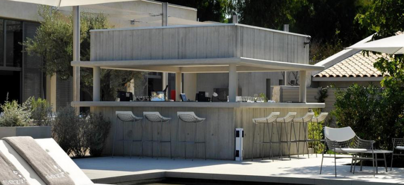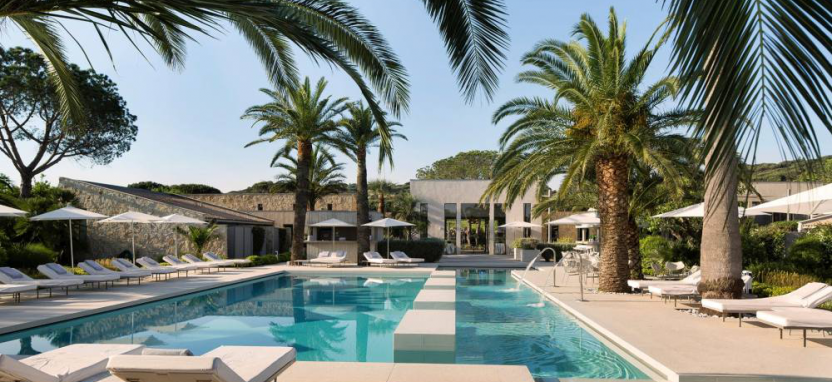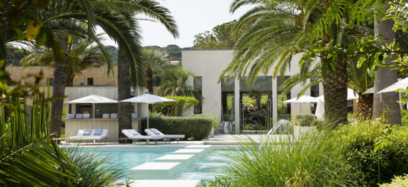 Открытый подогреваемый бассейн окружен невысокими строениями, напоминающими бунгало, и зелеными пальмами. Sezz Saint-Tropez 5* расположился поблизости от пляжа и в нескольких минутах езды от центра Сен-Тропе.
