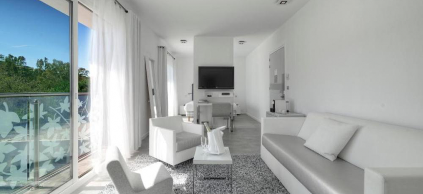 Junior White Room (35 кв. м) – двухуровневый полулюкс в белых тонах с видом на сад или бассейн, спальня с двуспальной кроватью на верхнем уровне, гостиная зона, письменный стол, ванная комната с ванной, терраса. Размещение – 2 человека.