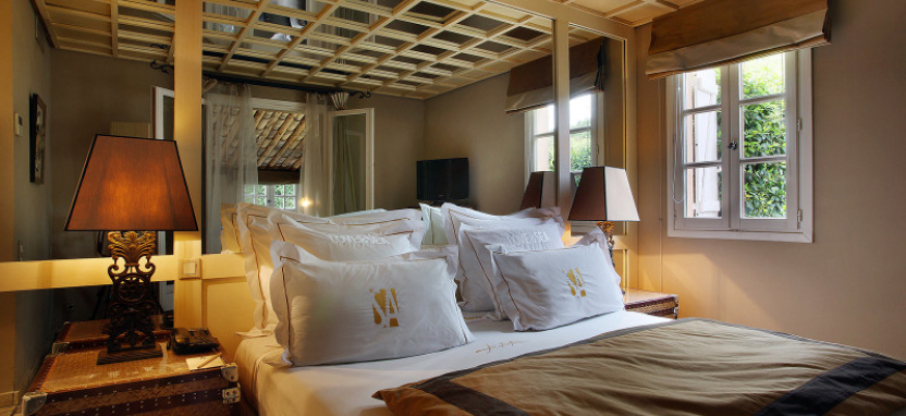 Каждая деталь интерьера пропитана шармом средиземноморья — деревянные балки потолков, мягкие ткани пастельных оттенков и антикварная мебель придают номерам особый колорит.