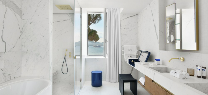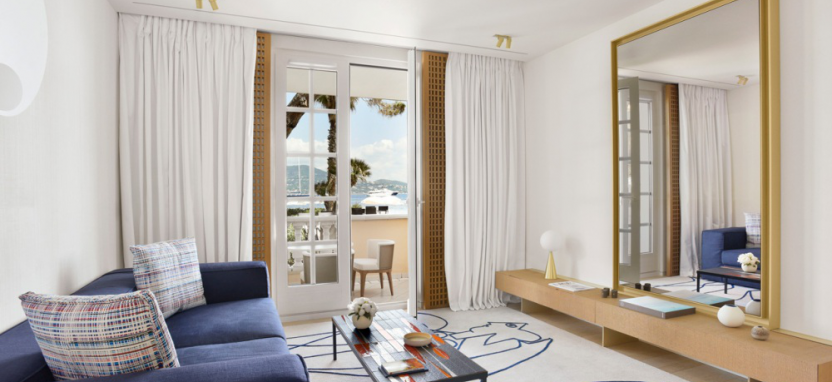 Просторные номера в светлых и синих тонах оборудованы современной техникой и мебелью ручной работы, подчеркивая внимание к деталям и качеству обслуживания. Гости Cheval Blanc St Tropez могут насладиться панорамными видами на лазурные воды Средиземного моря прямо из своих окон.