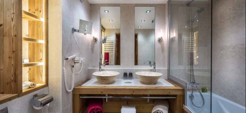 A Sup Category Room (27 кв. м) - вид на горы, спальня с двуспальной кроватью, ванная комната. Некоторые номера данной категории возможно совместить, для удобства проживание семьи с детьми.