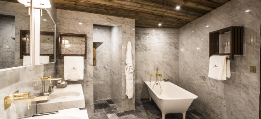 Chalet Ambre - Junior Suite № 1 (29 кв. м комната + 8 кв. м (ванная комната и туалетная комната)) - расположен на 2 этаже шале, состоит из спальни с двуспальной кроватью или двумя кроватями twin, угловой гостиной зоны, ванной комнаты с ванной, душем и двухсекционной раковиной, отдельной туалетной комнаты.