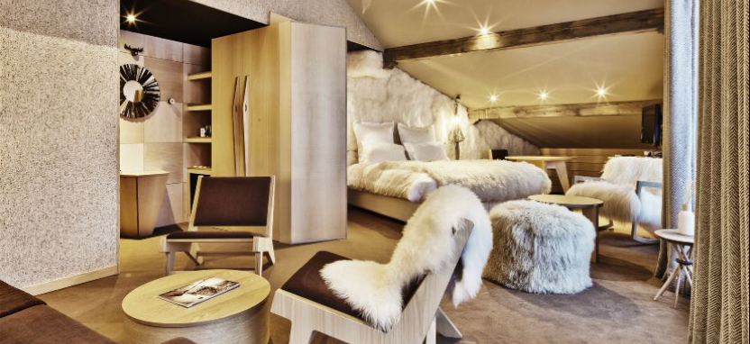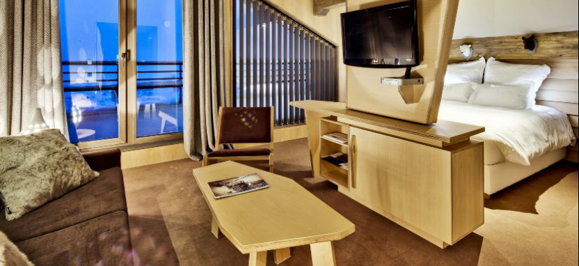 Cocooning Suite (50 кв. м + балкон) – уникальный люкс в шикарном скандинавском стиле с видом на горы и потрясающим панорамным видом на гору Cime Caron. Включает двуспальную кровать, гостиную с двумя односпальными кроватями (80×180 см) для детей и балкон. Ванная комната — с двойной раковиной, душем, ванной, отдельным туалетом. Возможна установка детской кроватки. Максимальное размещение — 2 взрослых + 2 детей.