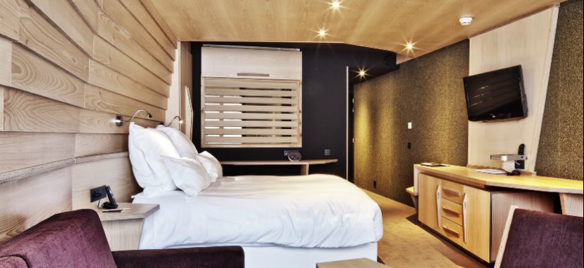 Огромный спа-центр предоставляет открытый бассейн с панорамой на пик Карон, снежную комнату, хаммам, сауну и множество индивидуальных процедур. Семейные люксы с мезонинами демонстрируют продуманную планировку: отдельные зоны для взрослых и детей, что обеспечивает уют и приватность.