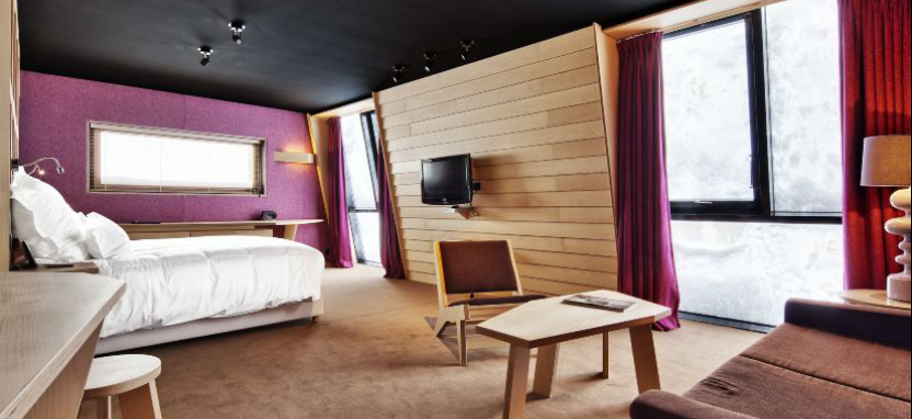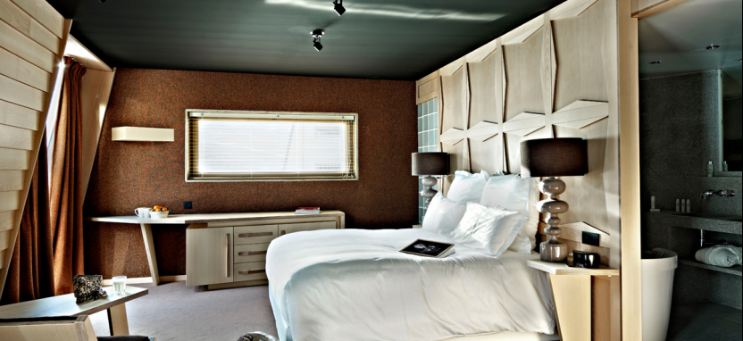 Семейные варианты: Junior Family Suite, двухуровневые Duplex (до 6 человек), Cocooning Suite с балконом и видом на пик Карон.