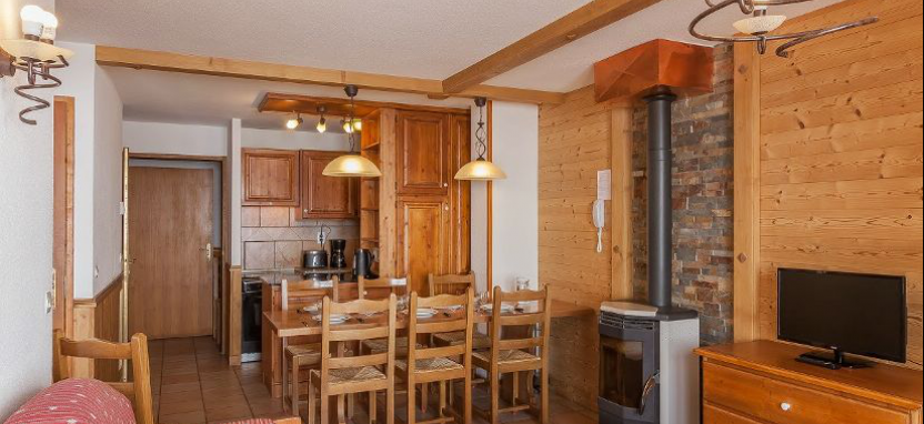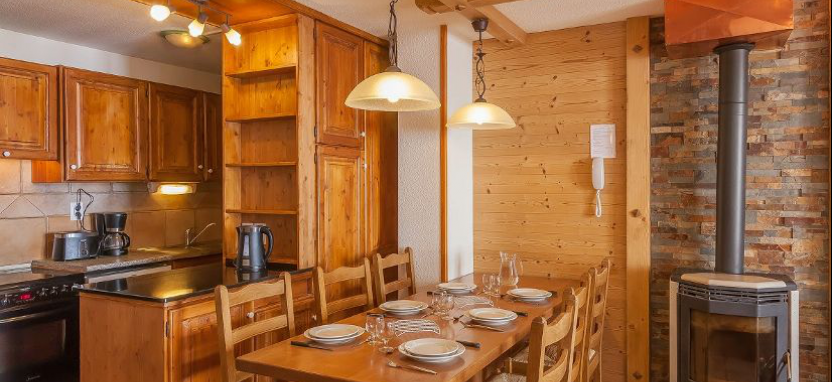 8/10 pers Apartment (95 кв. м) – апартаменты с 4 спальнями и гостиной с раскладным диваном. Ванная комната — с гидромассажной ванной, есть душевая и 3 отдельных туалета. В гостиной — камин, ТВ, телефон. Кухня: холодильник, духовой шкаф, посудомоечная машина, индукционная плита, микроволновка, кофемашина, чайник, тостер. Максимальное размещение — 10 человек.