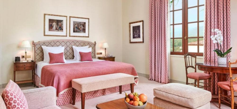 Classic Junior Suite (35-40 кв. м) – спальня с гостиной зоной, ванная комната. Панорамный вид на холмы.