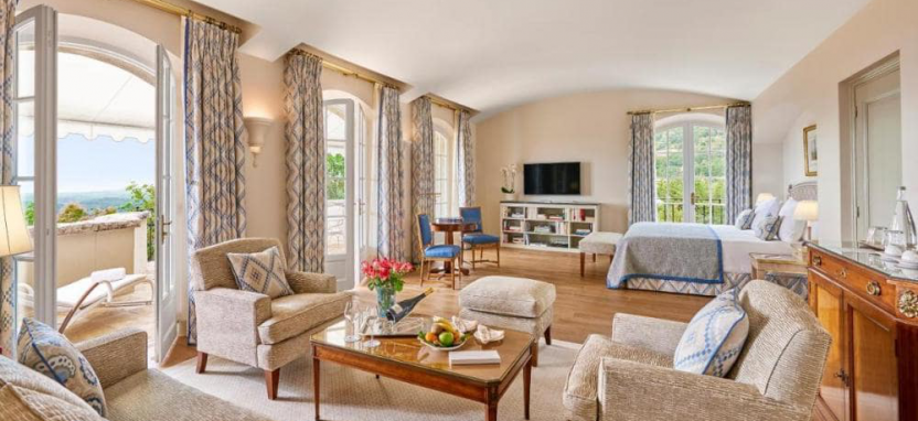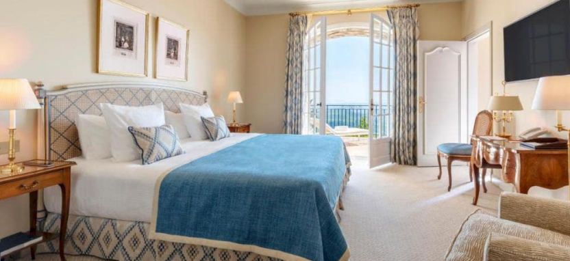 Deluxe Junior Suite (45-55 кв. м) – спальня с гостиной зоной, ванная комната, терраса. Вид на Французскую Ривьеру.