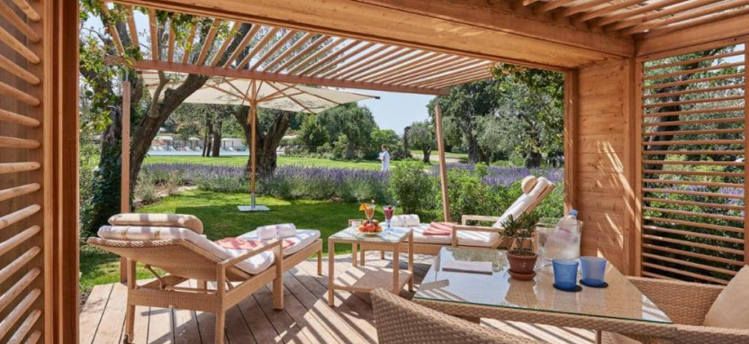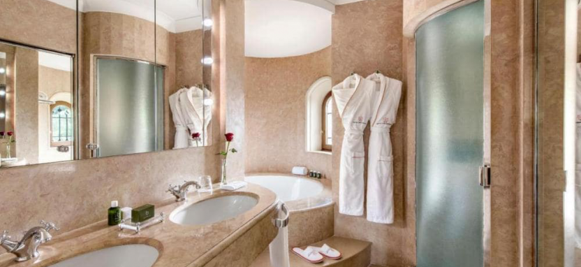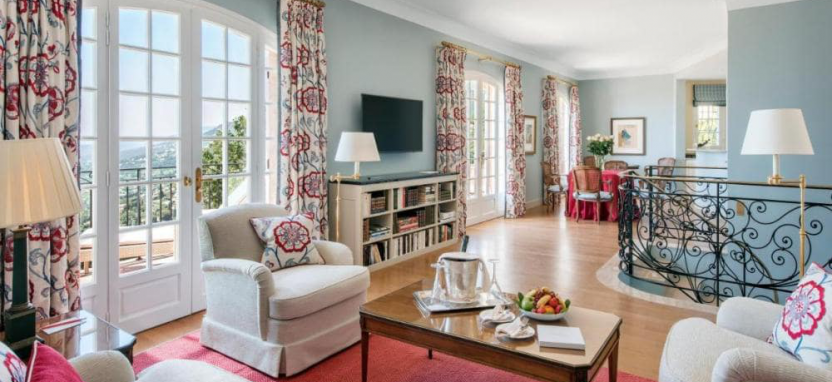 L`Atelier Junior Suite (69 кв. м) – гостиная, спальня, гардеробная, ванная комната с хаммам, глубокой ванной и душем на открытом воздухе, терраса. Вид на море и Французскую Ривьеру.