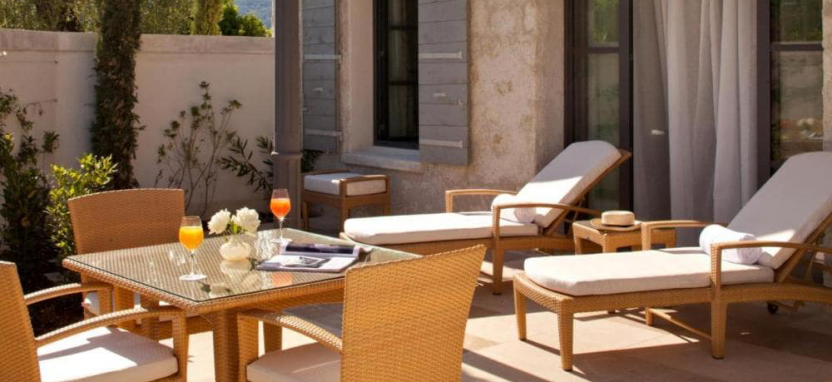 Suite (60 кв. м) – гостиная, спальня, ванная комната, терраса, частный сад с мебелью и беседкой.