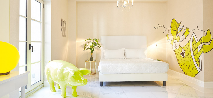 Art Chic Suite (50 кв. м) - номер с окнами от пола до потолка, украшен настенной росписью с изображением сказочных героев, состоит из спальни с кроватью king-size или двумя кроватями twin, гостиной с диваном, 2 ванных комнат. Вид на площадь Котция или город. В некоторых номерах имеется балкон. Размещение – 3 взрослых.