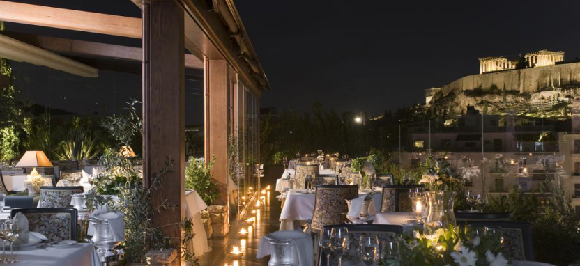 Отель предлагает своим гостям светлые и просторные номера различных категорий. Из номеров открывается вид на бассейн и сады отеля, на холм Ликабет и Храм Зевса. Вид дополнен изысканным убранством, неповторимо сочетающим тонкий вкус, деликатную роскошь и современные представления о комфорте.