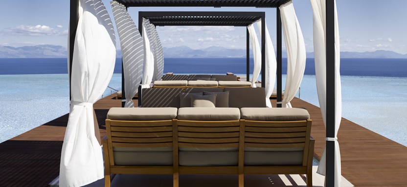Ionian Seaview Four Bedroom Pool Villa 9 pax (327 кв. м) - в номере четыре спальни, отдельная гостиная, мини-кухня, ванная комната с душем и ванной, гостевая ванная комната, частный бассейн, садовая терраса, вид на море.