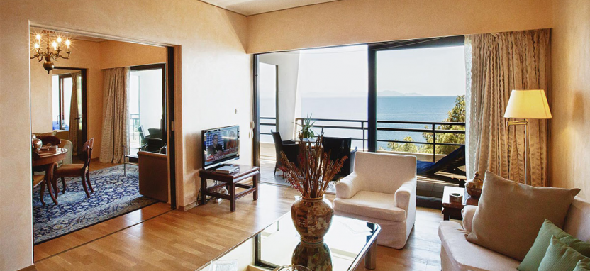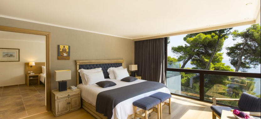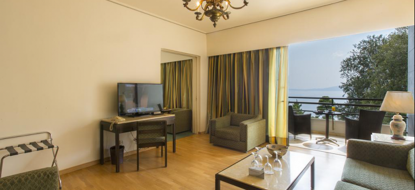 Presidential Suite Sea / Mouse Island View (80 кв. м) - исторический люкс приглашает вас в свои элегантные помещения, которые излучают особое спокойствие островной жизни. Президентский люкс на протяжении многих лет принимал многих премьер-министров и знаменитостей, таких как президент Соединенных Штатов. Сьют расположен на верхнем этаже. Из этого люкса открывается панорамный вид на Мышиный остров и лазурные просторы Ионического моря. Состоит из двух удобных спален, стильной гостиной, туалета, ванной комнаты с ванной и отдельной мини-кухни. Максимальное размещение - 4 взрослых.