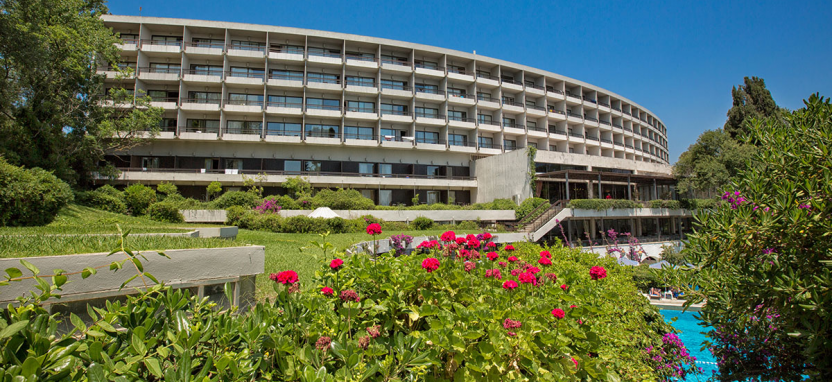 Corfu Holiday Palace Resort & Spa - роскошный отель на полуострове Канони, состоящий из современного главного здания и комплекса уютных бунгало, располагается среди ароматных сосен, стройных кипарисов и эвкалиптов, на песчаном берегу бирюзового Ионического моря.