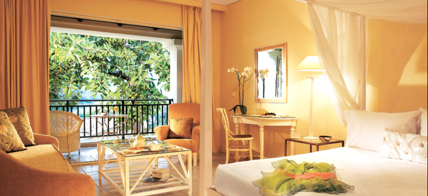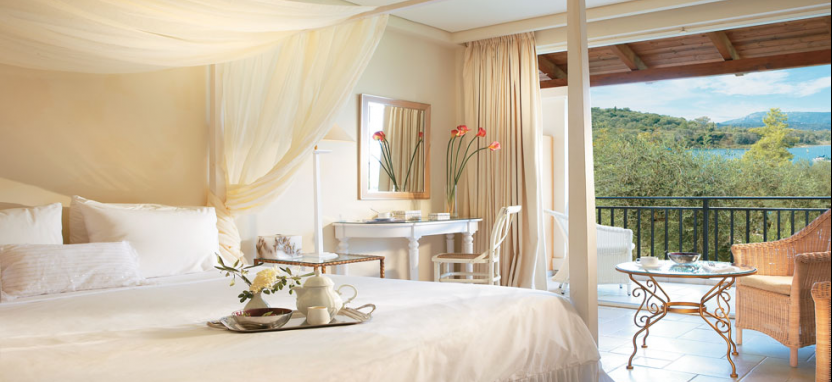 Superior Bungalow Sea View (25 кв. м) - улучшенные уникальные номера с романтической атмосферой в бунгало в окружении экзотических садов, вид на спокойные воды Ионического моря, 1 или 2 этаж, спальня, просторная ванная комната с ванной и двумя раковинами, балкон. Максимальное размещение - 2 взрослых и 1 ребенок.