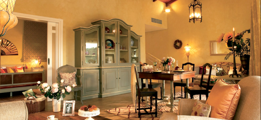 Junior Bungalow Suite Sea (38 кв. м) - уютные семейные сюиты в бунгало в цветущих садах, вид на море и сад, объединенные спальня и гостиная зона, декорированная дорогими тканями приглушенных тонов, просторная ванная комната с ванной и двумя раковинами, открытая веранда. Располагаются на 1 этаже. Окна от пола до полка. Максимальное размещение - 2 взрослых и 2 ребенка.