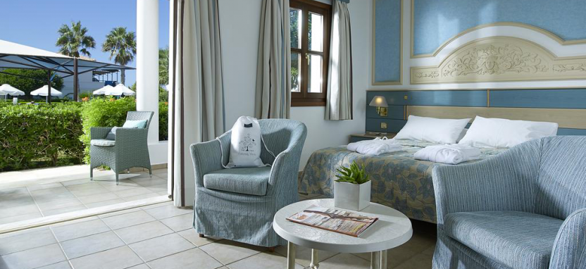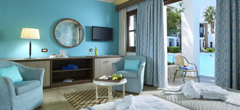Junior Suite Sharing Pool (49 кв. м) - вид на сад, гостиная зона, спальня, ванная комната с джакузи, терраса или балкон, общий бассейн для нескольких номеров.
