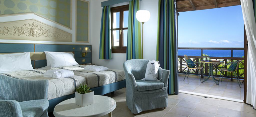 Junior Suite Sea Front Private Pool (49 кв. м) - фронтальный вид на море, гостиная зона, спальня, ванная комната с джакузи, терраса или балкон, приватный бассейн.