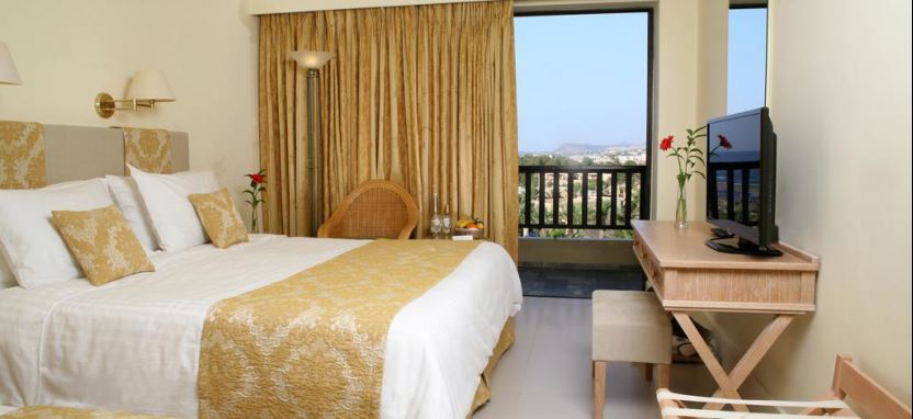 Mythica Club Maisonette 4 pax (90 кв. м) - двухуровневые виллы. Построенные в критском стиле. 1 уровень - просторная гостиная, ванная комната, терраса, 2 уровень - спальня, ванная комната, балкон. Боковой вид на море и вид на сад,
