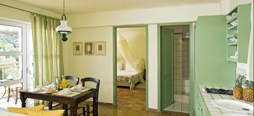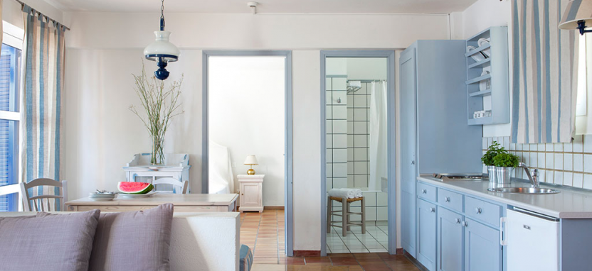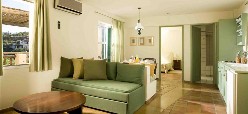 Superior Family Apartment Garden View or Side Sea View 6 pax (60 кв. м) - гостиная, мини-кухня, спальня, ванная комната, просторный балкон. Вид на сад или боковой вид на море,