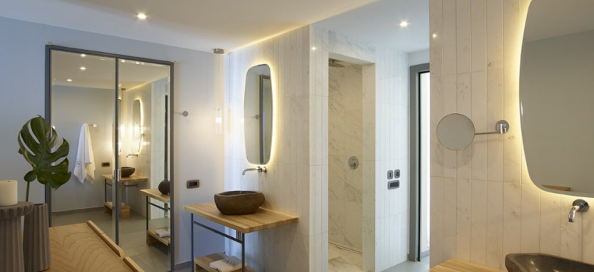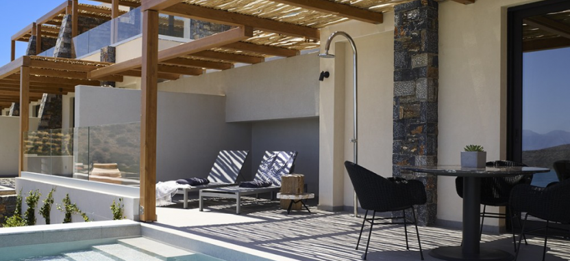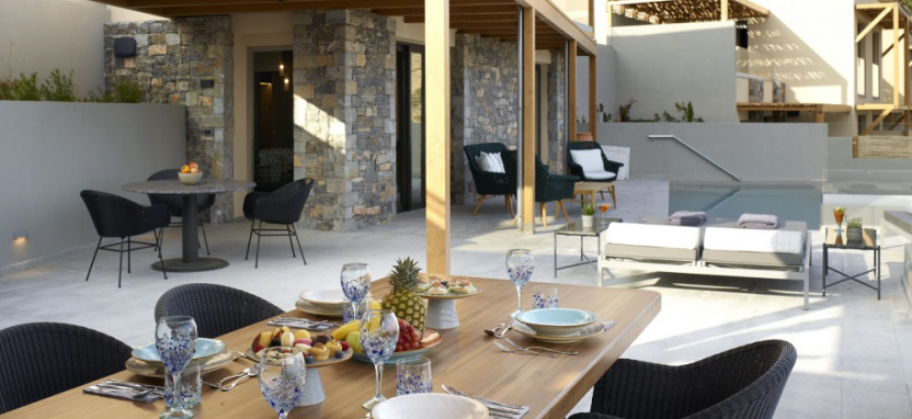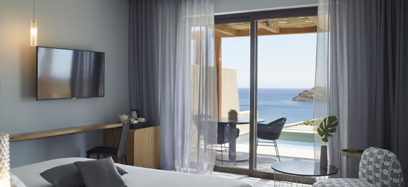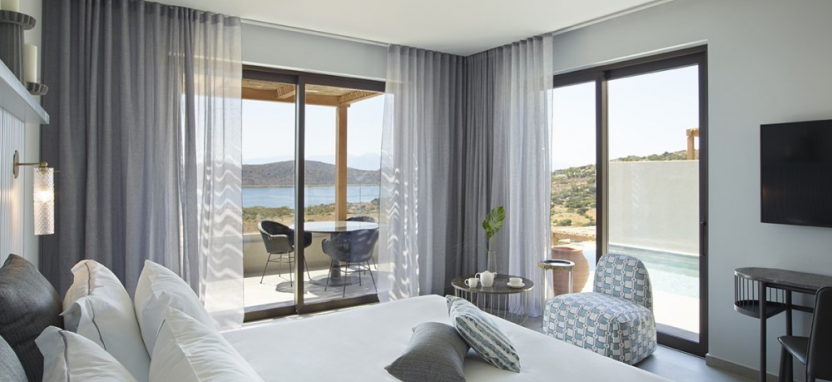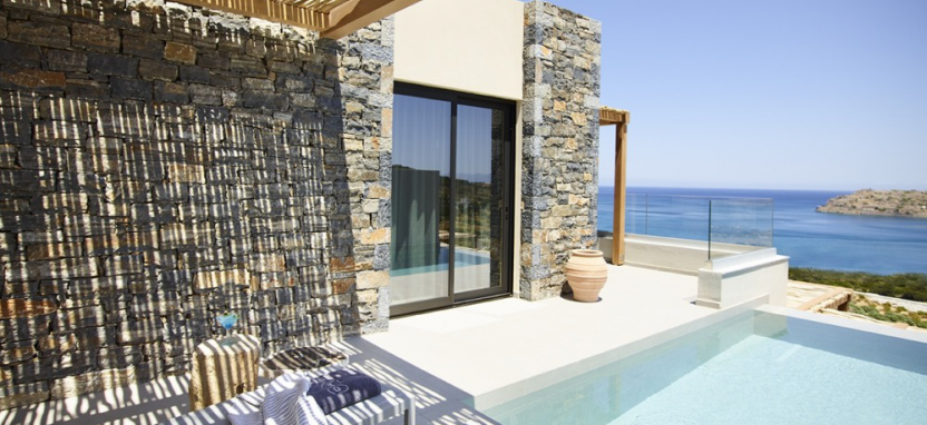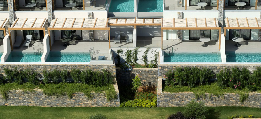 Villa Deluxe 2-bedroom Premium Sea View (125 кв. ) - трехуровневые виллы с видом на остров Спиналонга и залив Элунда, расположены в самой верхней точке комплекса. Две спальни с кроватями king-size и ванными комнатами, гостиная с панорамными видом, терраса, бассейн с подогревом. Тренажерный зал. Раскладная двуспальная диван-кровать, дополнительная ванная комната. Домашний кинотеатр с телевизором Smart TV 55”. Веранда 40 кв. м с панорамным видом на горы и море. Бассейн 16 кв. м с пресной водой, душем на свежем воздухе и лежаками. Услуги дворецкого и личного повара по запросу и за доплату.