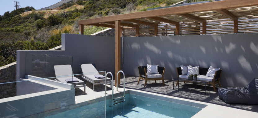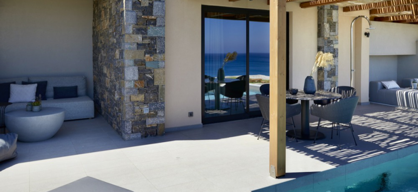 Superior Room Private Pool Sea View (33 кв. м) - однокомнатный номер с видом на море и частным бассейном, рассчитан на 2 гостей. Кровать Queen-bed или 2 одноместные, по запросу одна дополнительная и одна детская кровать. Веранда 20 кв. м с видом на море с обеденным столом и стульями. Частный бассейн 15 кв. м с пресной водой, душем на свежем воздухе и лежаками.