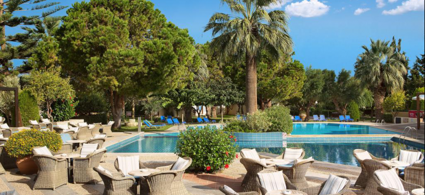 Cretan Malia Park - уютный отель, построенный в традиционном критском стиле, невысокие белоснежные здания которого, окружены цветами, экзотическими деревьями и пышной зеленью уникального ботанического сада.
