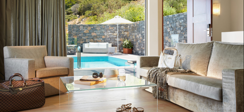 Junior Suite Sea View with Private Pool 2/3 pax (42 кв. м) - вид на море, гостиная зона, просторная спальня, ванная комната с ванной + душевая кабина, большая терраса, индивидуальный бассейн, внешняя площадь (терраса + бассейн) составляет 30 кв. м.
