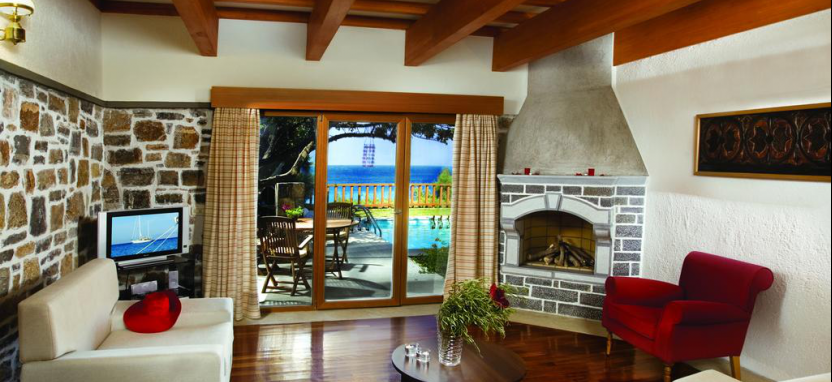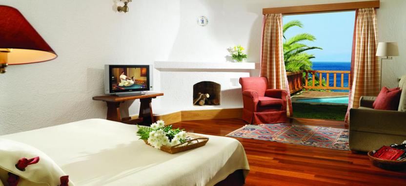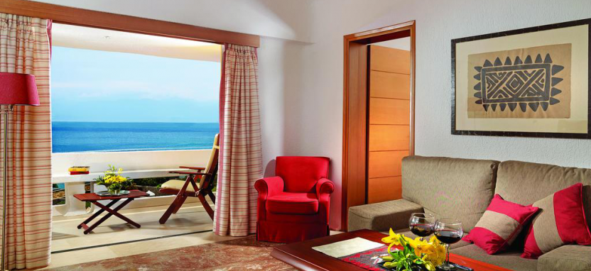 Knossos Royalty Suite with Private Pool (110 кв. м) - великолепный вид на море, рядом с пляжем, отдельная просторная гостиная, гардеробная, 2 спальни, 2 ванные комнаты (в одной душевая кабина, а в другой парная), гостевая туалетная комната, терраса, небольшой личный сад, 2 индивидуальных бассейна.