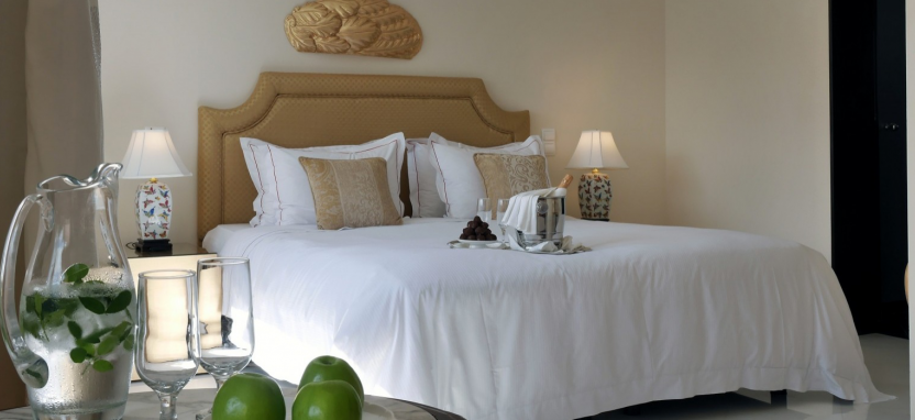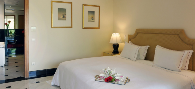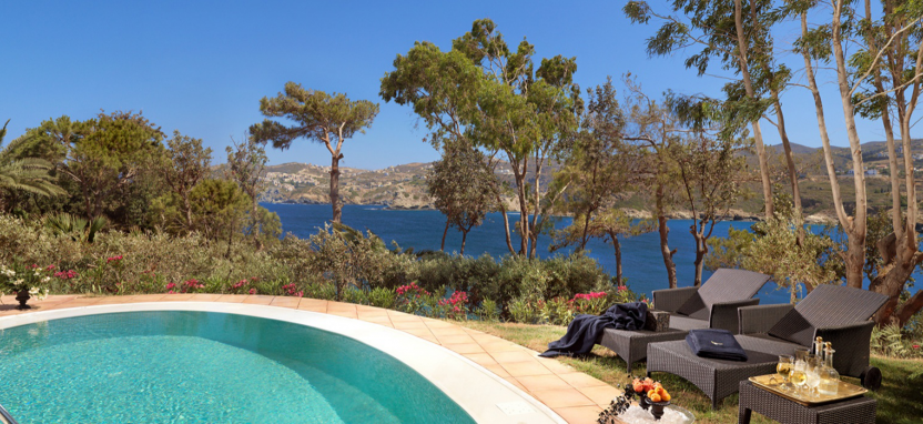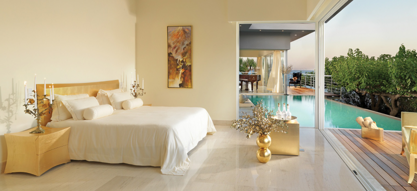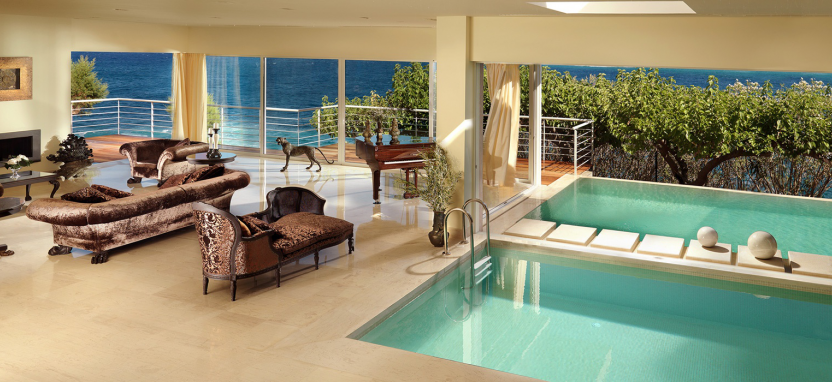 Luxury Junior Suite with Private Pool 2 pax (48 кв. м) - роскошные сюиты в главном здании, прекрасный вид на Эгейское море или на живописный сад, 1 этаж, гостиная зона, спальня, ванная комната с ванной-джакузи и душевой кабиной, терраса, частный бассейн (12 кв. м), сюиты данной категории могут быть могут быть совмещены между собой.