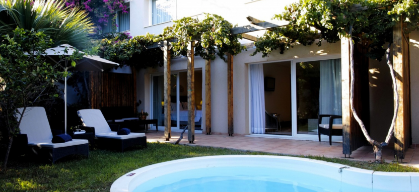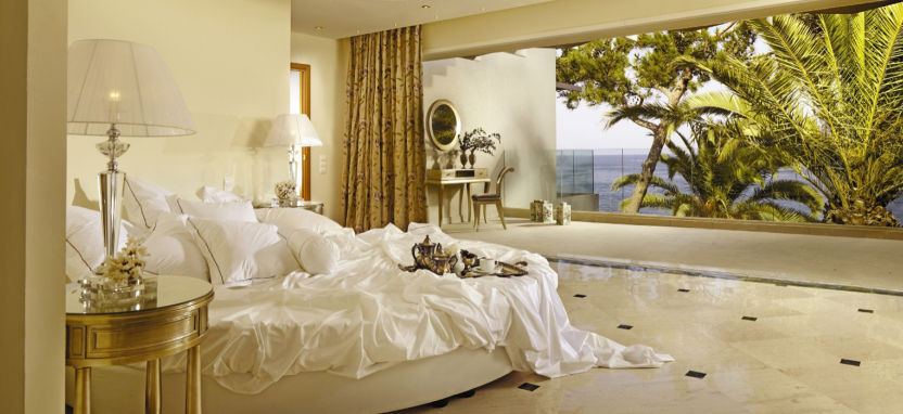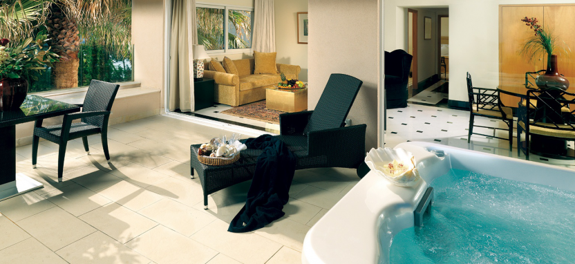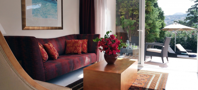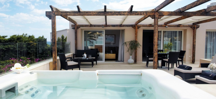 Luxury Junior Suite with Private Jacuzzi 2 pax (48 кв. м) - роскошные сюиты в главном здании, захватывающий вид на Эгейское море или на живописный сад, 1 или 2 этаж, гостиная зона, спальня, ванная комната с ванной-джакузи и душевой кабиной, терраса с джакузи на открытом воздухе, сюиты данной категории могут быть могут быть совмещены между собой.