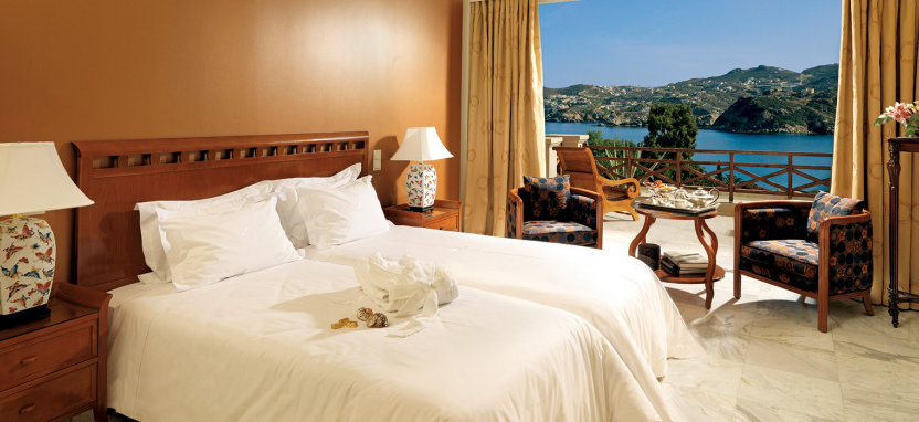 Classic Presidential Suite 2 pax (85-110 кв. м) - президентский сюит в главном здании, восхитительный вид на Эгейское море, отдельная гостиная с обеденной зоной, просторная спальня, ванная комната, отделанная мрамором, с ванной и отдельной душевой кабиной, собственная терраса с навесом, в случае необходимости номер данной категории может быть объединен с номером категории Classic Guestroom.