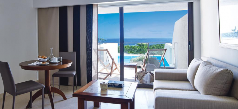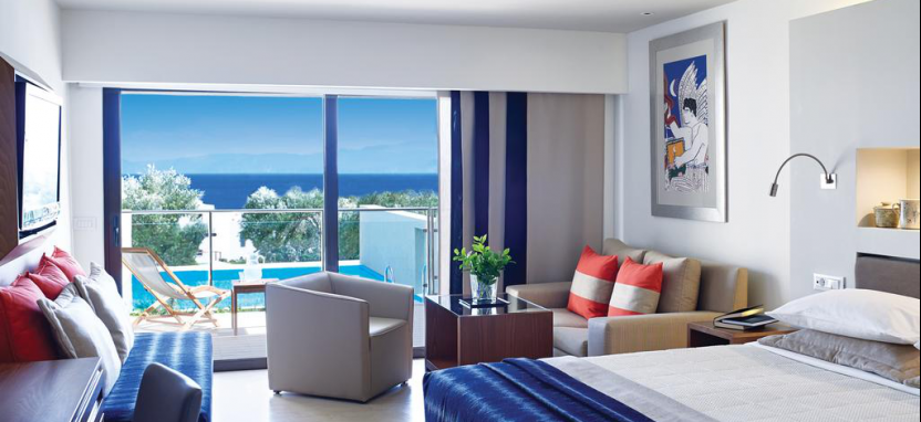 Porto Sea View Suite Individual Pool (60 кв. м) - двухуровневый номер, идеально для молодых семей, прекрасный вид на море, отдельная гостиная, спальня, ванная комната, балкон, просторная терраса, частный бассейн.