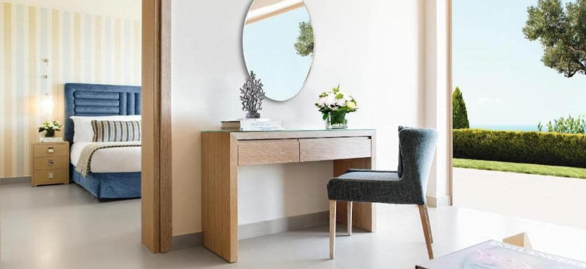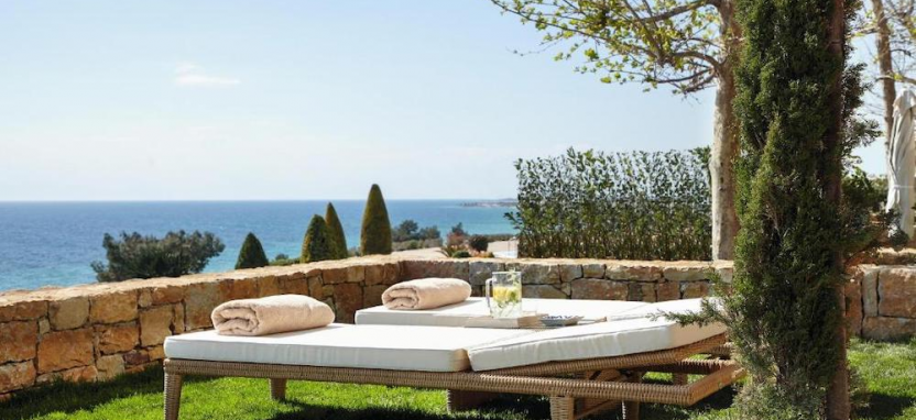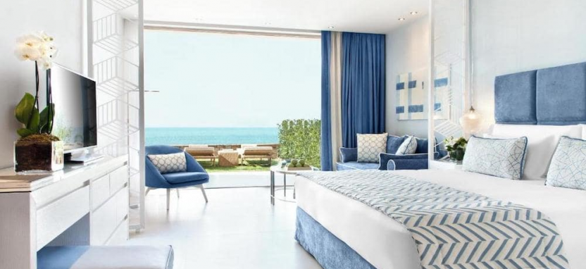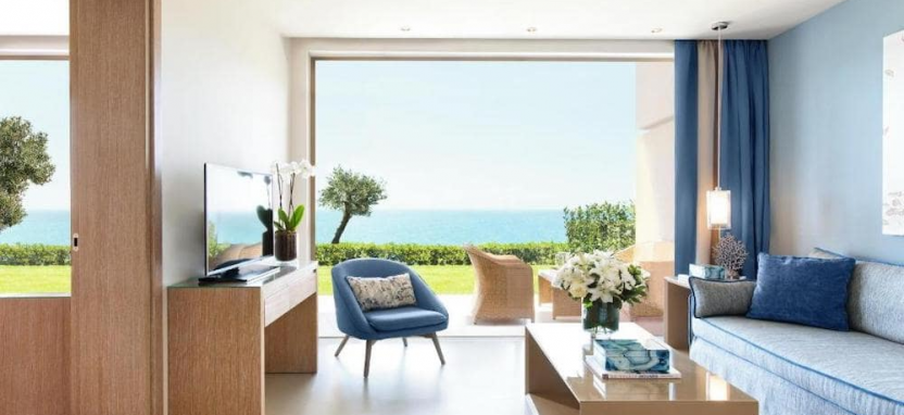 Junior Suite with Private Garden (35 кв. м) - вид на море, спальня с кроватью king-size, гостиная зона, ванная комната, частный сад с террасой.