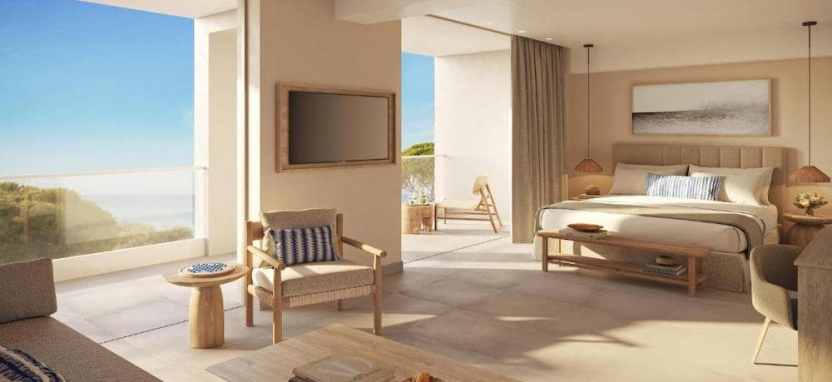 Panorama Junior Suite (37 кв. м) – вид на море, спальня с кроватью king-size, совмещенная гостиная зона, ванная комната с душевой кабиной, балкон.