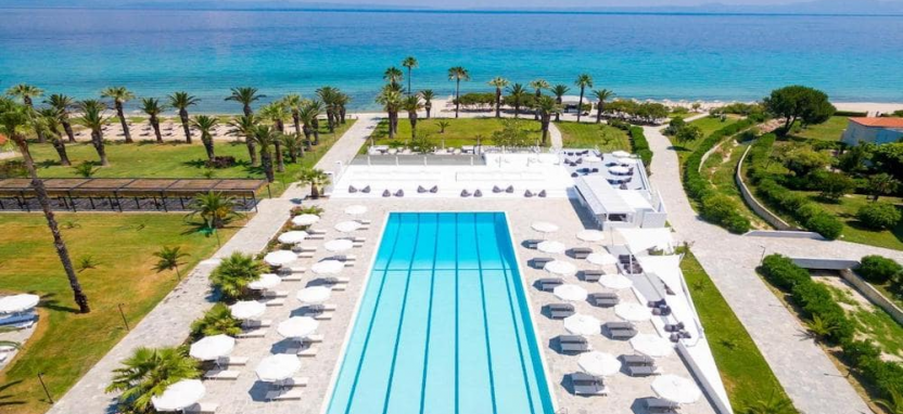 Kassandra Palace идеален для пар и семей, ценящих комфорт: здесь просторные номера с террасами, виллы с приватными бассейнами, 3 общих бассейна (включая детский) и SPA-центр с талассотерапией. Главные преимущества – собственная оборудованная пляжная линия, рестораны с греческой и международной кухней, а также высокий уровень сервиса. Для детей в Kassandra Palace работают мини-клуб и игровая площадка, а вечером гостей ждет живая музыка и тематические ужины.