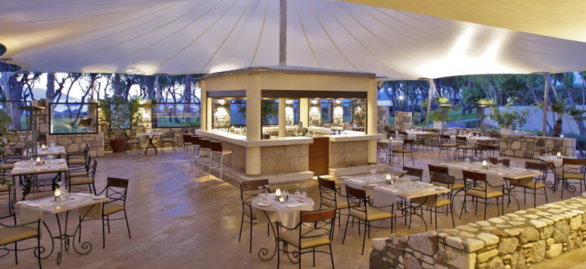 Четыре элегантных и уютных ресторана отеля (Neptune, Proteras, Osteria, The Tavern) представляют разнообразие интерьеров и меню международной и традиционной греческой кухни, сопровождаемое богатой картой вин, а 8 баров (Palace Bar, Residence Bar, 2 Pool Bars, Kafenio, Beach Bar, Apollon Theatre Bar, Night Club) — всевозможные напитки, легкие закуски и приятный отдых на любой вкус.