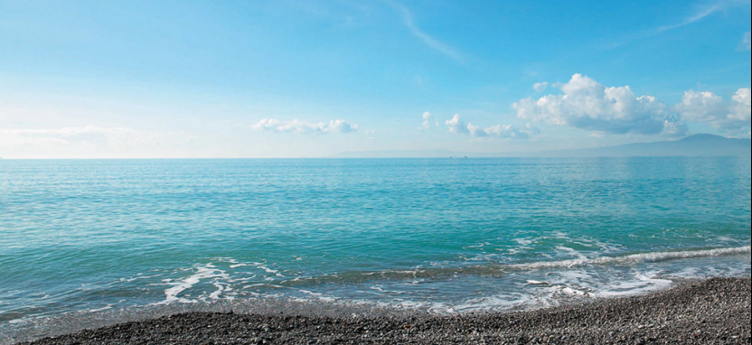 Галечный пляж (300 метров) с пологим входом в море, оборудованный кабинками для переодевания, душевыми, зонтиками и шезлонгами.