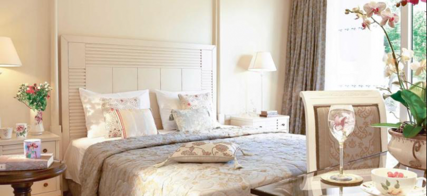 Deluxe Guestroom 2/3 pax (28-35 кв. м) - комфортабельные просторные номера в основном здании, декорированные в тёплых тонах природной палитры и оформленные с изысканным вкусом, вид на море, сад или горы, прихожая, гостиная зона, спальня, в некоторых номерах есть кровать с балдахином, просторная ванная комната с ванной, терраса или балкон.
