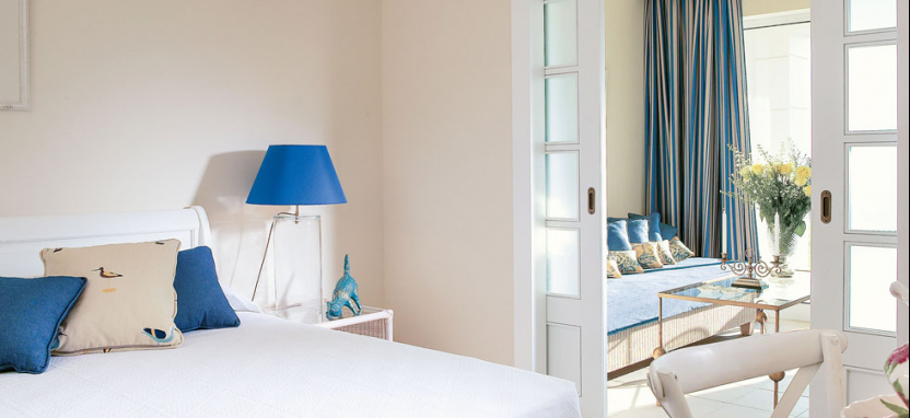 Riviera Family Guestroom Sea View with Play Garden & Covered Veranda 2/4 pax (38 кв. м) - комфортные и просторные семейные номера в основном здании. Великолепный вид на Ионическое море. Основная спальня и детская спальня разделены раздвижной дверью, просторная ванная комната с ванной, просторная крытая веранда (7 кв. м) с летней мебелью.