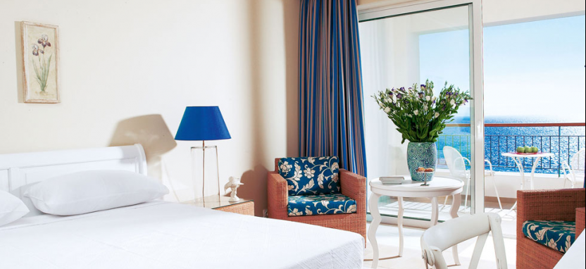 Superior Sea View Guestroom 3 pax (30 кв. м) - улучшенные просторные номера в основном здании. Великолепный вид на Ионическое море. Прихожая, гостиная зона, спальня, ванная комната с ванной, терраса или балкон.