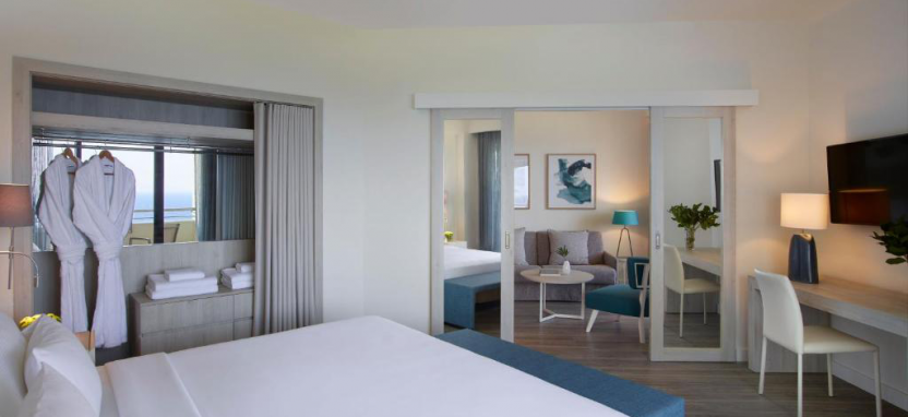 Rhodian Suite, 3-4 pax (92 кв. м) - президентский номер на 6 этаже с огромной террасой и лаунж-зоной.